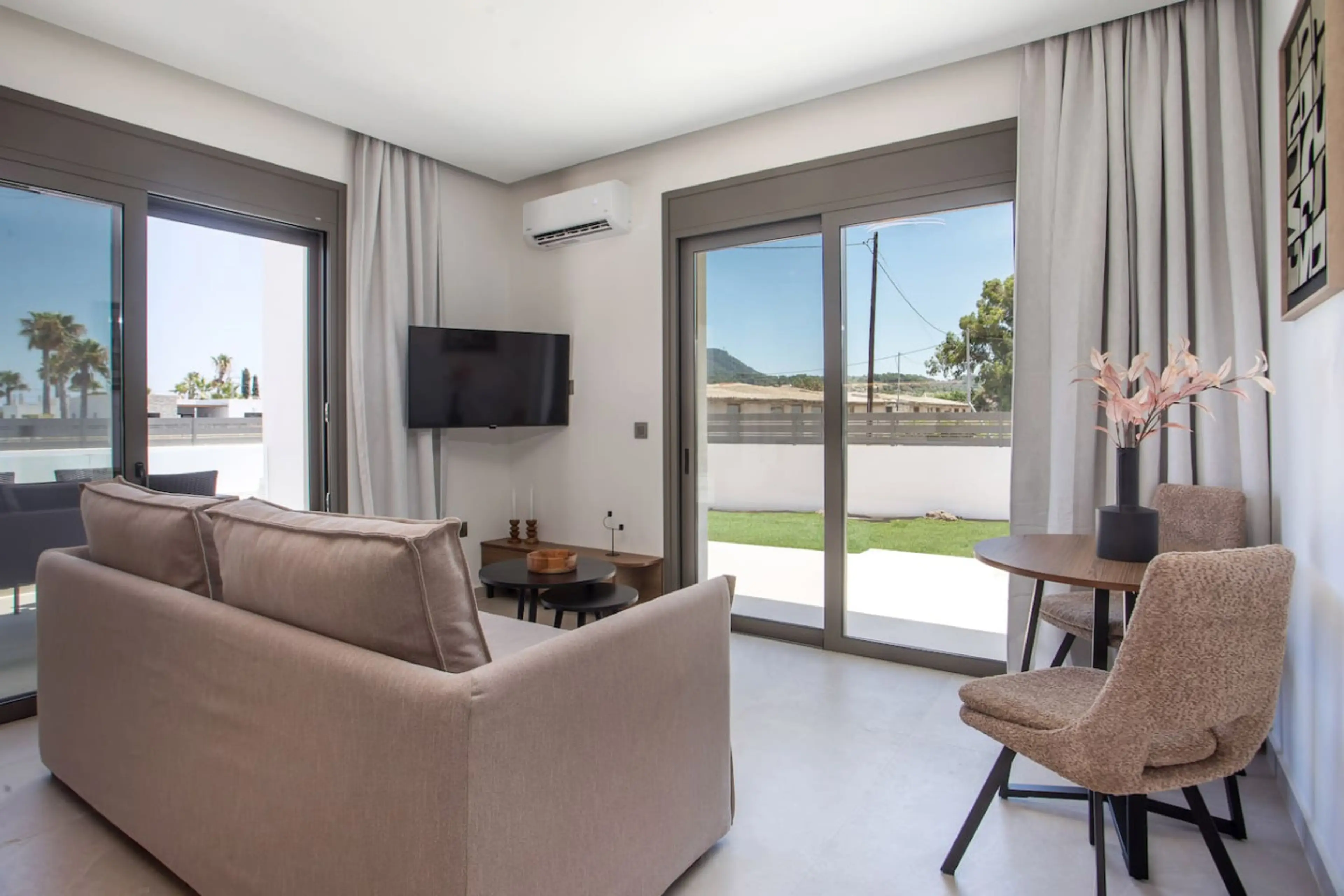 Positive: Przepiękny nowy apartament, dość kompaktowy ale za to z ogromnym tarasem i bardzo ładnym basenem. Cała posesja bardzo zadbana, przychodzi nawet ogrodnik. Samoloty są dość mocno słyszalne, ale nie przeszkadzają - my wybraliśmy tą lokalizację celowo i codziennie wieczory spędzaliśmy na tarasie obserwując lądujące samoloty. Polecamy też ze względu na świetny kontakt z wynjamującym przez Booking